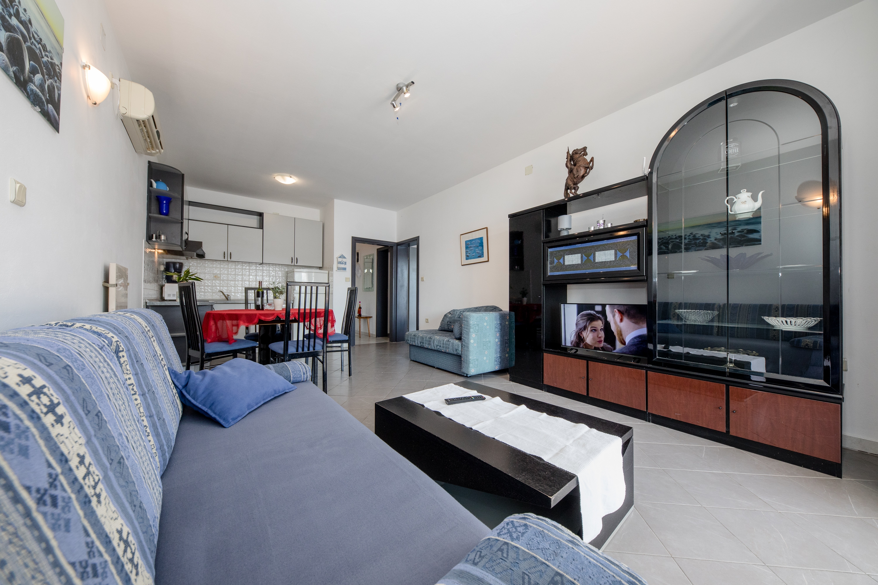 Apartment can accommodate 3 guests. Beds are situated in 2 sleeping rooms, within 55m2. Guests can use a private terrace to enjoy the warm summer evenings. The apartment offers the sea view. Food can be prepared using barbecue which is shared with other guests too. This accommodation unit welcomes pets at an additional charge. INCLUDED IN THE PRICE: tourist tax, final cleaning, air-conditioning, parking, internet, portable barbecue, sunshade, sunchairs. OBLIGATORY ADDITIONAL COSTS: short stay fee (surcharge depending on a number of booked nights: 30% - 1, 20% - 2, 10% - 3). OPTIONAL ADDITIONAL COSTS: laundry (€5.00 washing), boat (€160.00 per night), boat mooring (€20.00 per night), pets (€5.00 per night). The availability of additional services for your chosen dates of stay, as well as their prices (if none are listed) must be checked ahead of time. Any additional services not shown in the price calculation are payable directly to the property owner and only if used by the visitor.