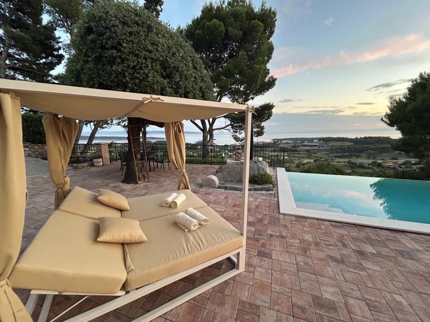 Villa with Private Pool. The pool with a view is a top feature of this villa. Boasting a private entrance, this air-conditioned villa comes with 1 living room, 2 separate bedrooms and 2 bathrooms with a walk-in shower and a bath. Guests will find a stovetop, a refrigerator, a dishwasher and kitchenware in the fully equipped kitchen. The villa also includes a barbecue. Featuring a terrace with sea views, this villa also features a washing machine and a flat-screen TV with cable channels. The unit has 4 beds.