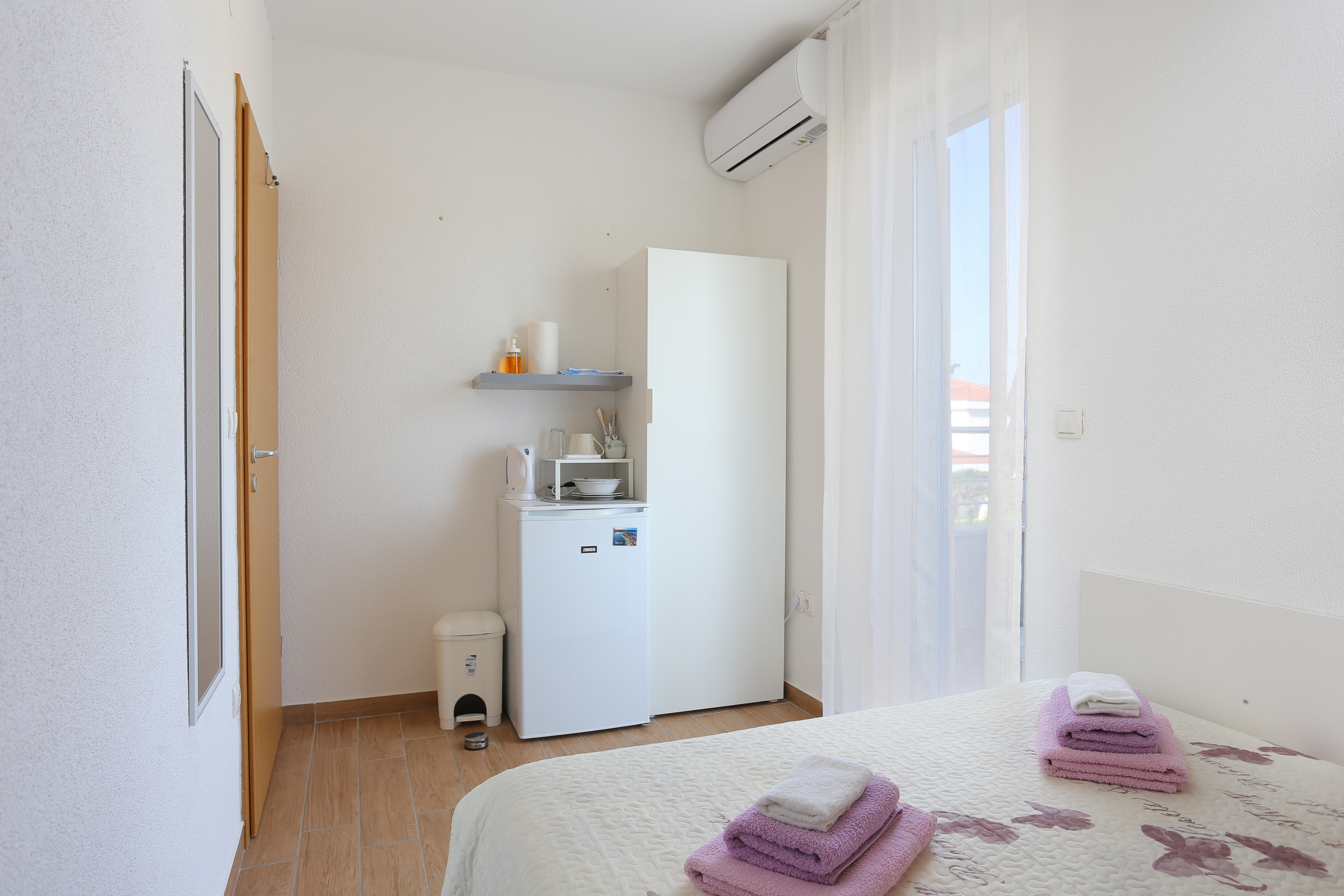 Room can accommodate 2 guests. Beds are situated in 1 sleeping rooms, within 10m2. Guests can use a private balcony to enjoy the warm summer evenings. The room offers the sea view. Food can be prepared using barbecue which is shared with other guests too. Reserved accommodation unit is a room with its own bathroom and there is no usage of kitchen. INCLUDED IN THE PRICE: tourist tax, final cleaning, air-conditioning, parking, internet, baby cot. OBLIGATORY ADDITIONAL COSTS: short stay fee (surcharge depending on a number of booked nights: 30% - 1, 20% - 2, 10% - 3). OPTIONAL ADDITIONAL COSTS: laundry (€10.00 washing), bicycle (€10.00 daily (per piece)). The availability of additional services for your chosen dates of stay, as well as their prices (if none are listed) must be checked ahead of time. Any additional services not shown in the price calculation are payable directly to the property owner and only if used by the visitor. Discounts to the base price: free day 14=13 (for reservations of 14 or more days you get one free day for the stay until 31122026).