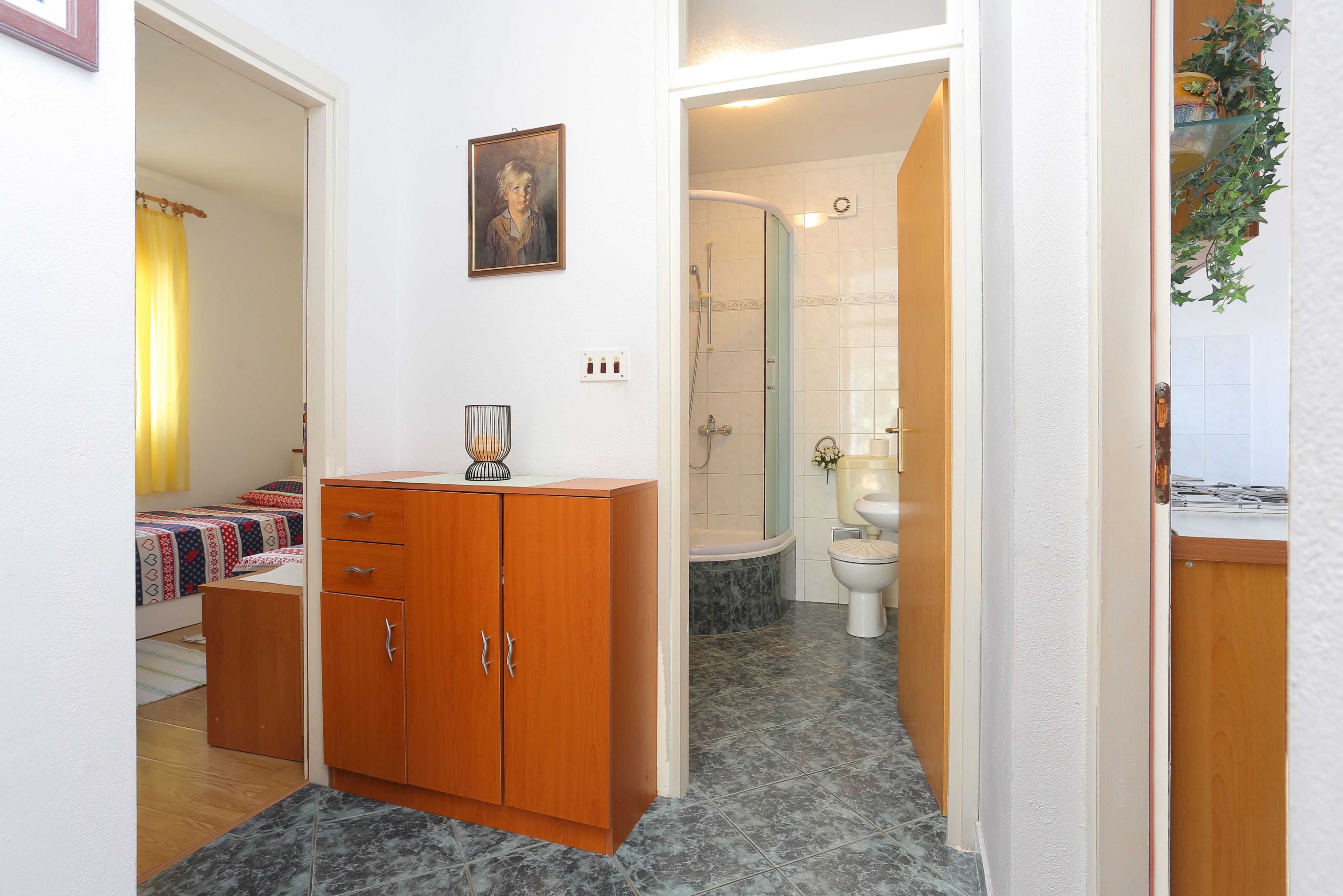 House 20142 in the town of Rogoznica, Rogoznica - North Dalmatia has accommodation units of type Apartment (3) and is 150 m away from the sea. The nearest beach to this accommodation is a pebble beach. Other guests will most likely be staying in the houses other apartments. During your holiday, your hosts will also be present in the house. The house owner is under no obligation to accept additional persons and pets that were not stated in the reservation request and it is necessary to report them in advance.AMENITIES Infield (Well-kept), Courtyard (50m2, Sitting area), Parking lot (Number of parking spaces: 4, Distance from the house: In the courtyard), Garage, (Number of parking spaces: 2), Barbecue: shared, WiFi Internet, Laundry service, Hairdryer, Iron, Ironing board LOCATION AND ACCESS Facility is situated near a local road Local road between the property and the beach Car access possible: Yes The facility is situated in relatively quiet surroundings The facility is partly surrounded by vegetation DISTANCES Sea: 150 m Beach: 200 m Center: 2 km Shop: 1.5 km Pharmacy: 2.4 km Exchange office: 2 km ATMBank machine: 2 km Tourist info: 2 km Airport: 37 km Gas station: 8.7 km Farmers market: 2 km