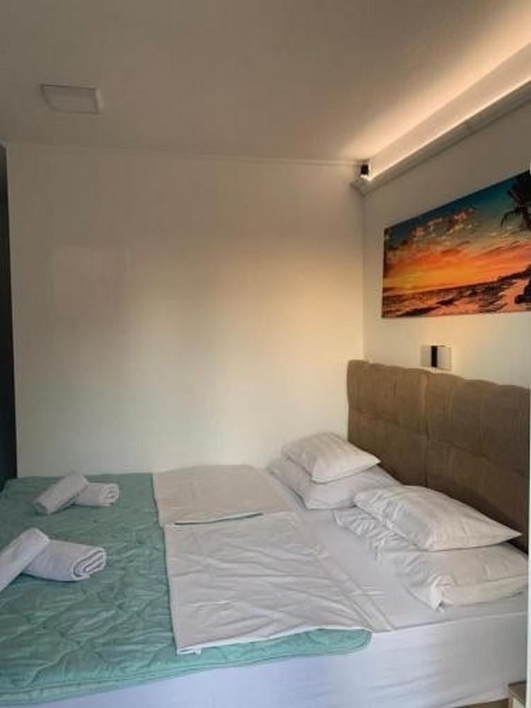 Apartment can accommodate 4 guests. Beds are situated in 2 sleeping rooms, within 33m2. Guests can use a private terrace to enjoy the warm summer evenings. Food can be prepared using barbecue which is shared with other guests too. This accommodation unit welcomes pets at no additional costs. INCLUDED IN THE PRICE: tourist tax, final cleaning, air-conditioning, central heating, parking, internet, pets, hairdryer. OPTIONAL ADDITIONAL COSTS: breakfast (€10.00, a 50% discount for children aged 4 to 12 years, Children up to age 4 free of charge), half-board (€25.00, a 50% discount for children aged 4 to 12 years, Children up to age 4 free of charge). The availability of additional services for your chosen dates of stay, as well as their prices (if none are listed) must be checked ahead of time. Any additional services not shown in the price calculation are payable directly to the property owner and only if used by the visitor. Discounts to the base price: free day 14=13 (for reservations of 14 or more days you get one free day for the stay until 31122026).