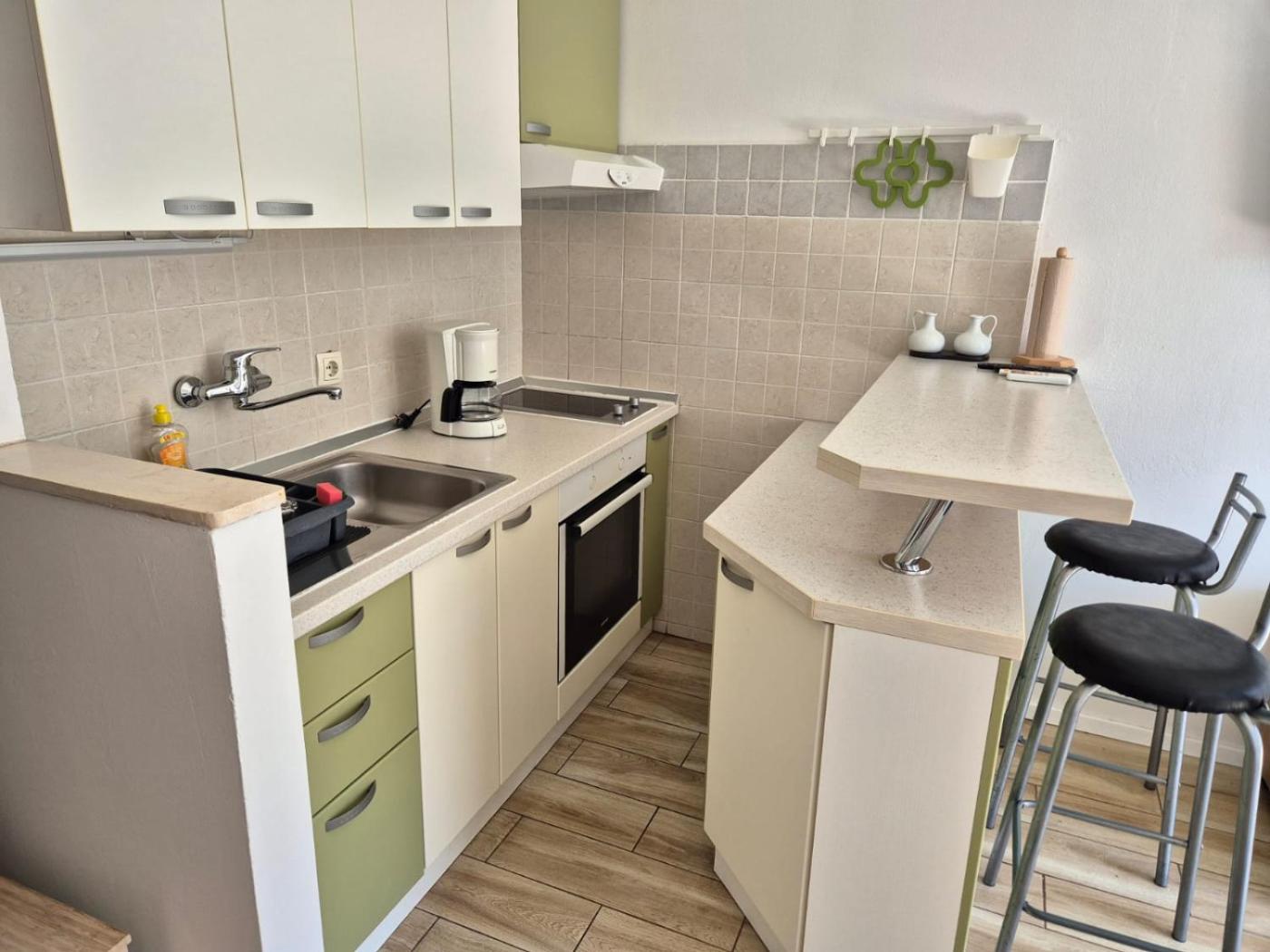 Studio with Sea View. The studio includes a private bathroom fitted with a walk-in shower and a hairdryer. In the well-fitted kitchen, guests will find a stovetop, a refrigerator, kitchenware and an oven. The air-conditioned studio offers a flat-screen TV with cable channels, a washing machine, a coffee machine, a wardrobe as well as sea views. The unit has 2 beds.
