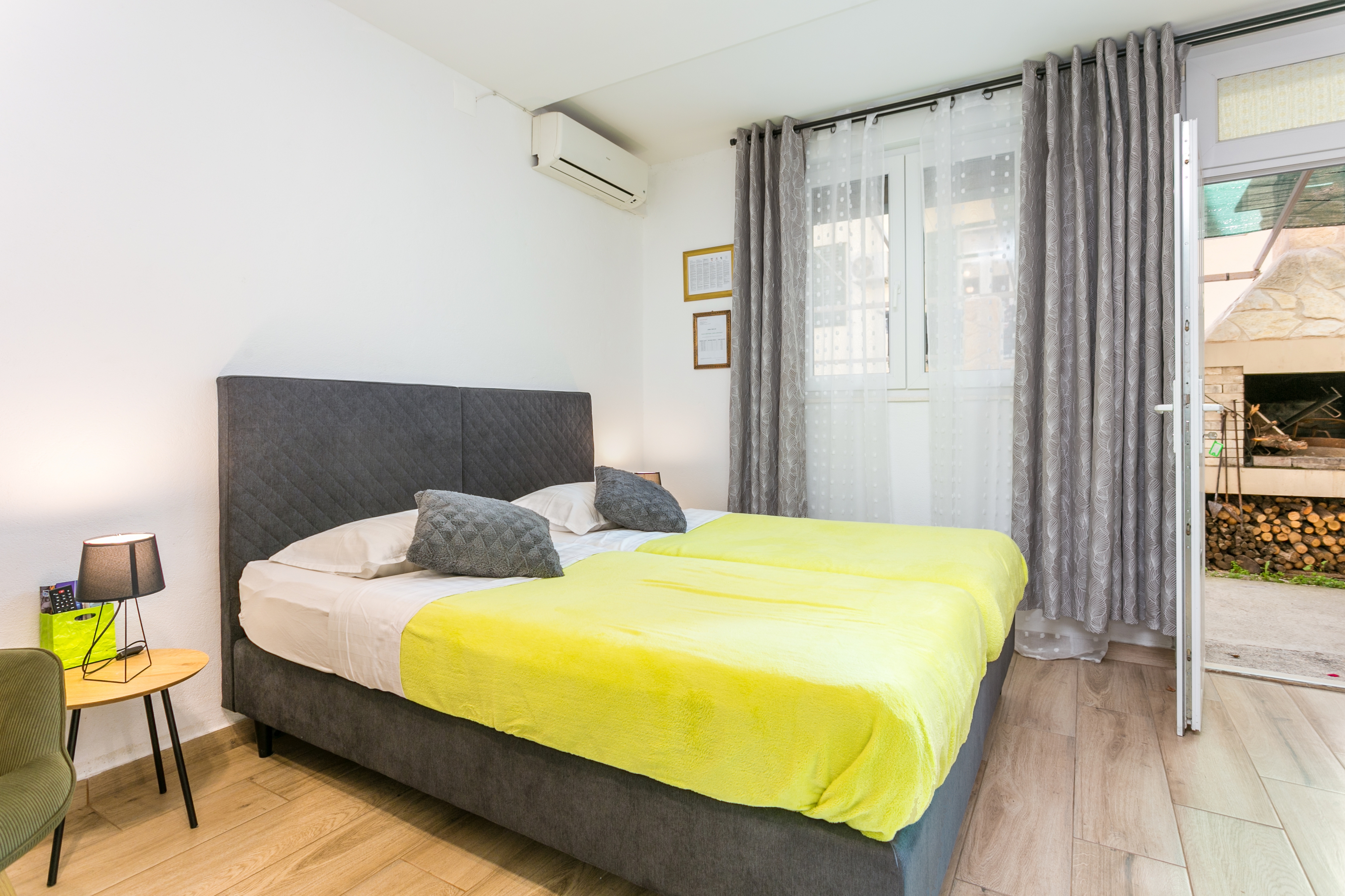 Studio flat can accommodate 2 guests. Beds are situated in 1 sleeping rooms, within 23m2. Guests can use a private terrace to enjoy the warm summer evenings. Food can be prepared using barbecue which is shared with other guests too. INCLUDED IN THE PRICE: tourist tax, final cleaning, air-conditioning, parking, internet. OBLIGATORY ADDITIONAL COSTS: short stay fee (surcharge depending on a number of booked nights: 30% - 1, 20% - 2, 10% - 3). The availability of additional services for your chosen dates of stay, as well as their prices (if none are listed) must be checked ahead of time. Any additional services not shown in the price calculation are payable directly to the property owner and only if used by the visitor. Discounts to the base price: free day 14=13 (for reservations of 14 or more days you get one free day for the stay until 31122026).