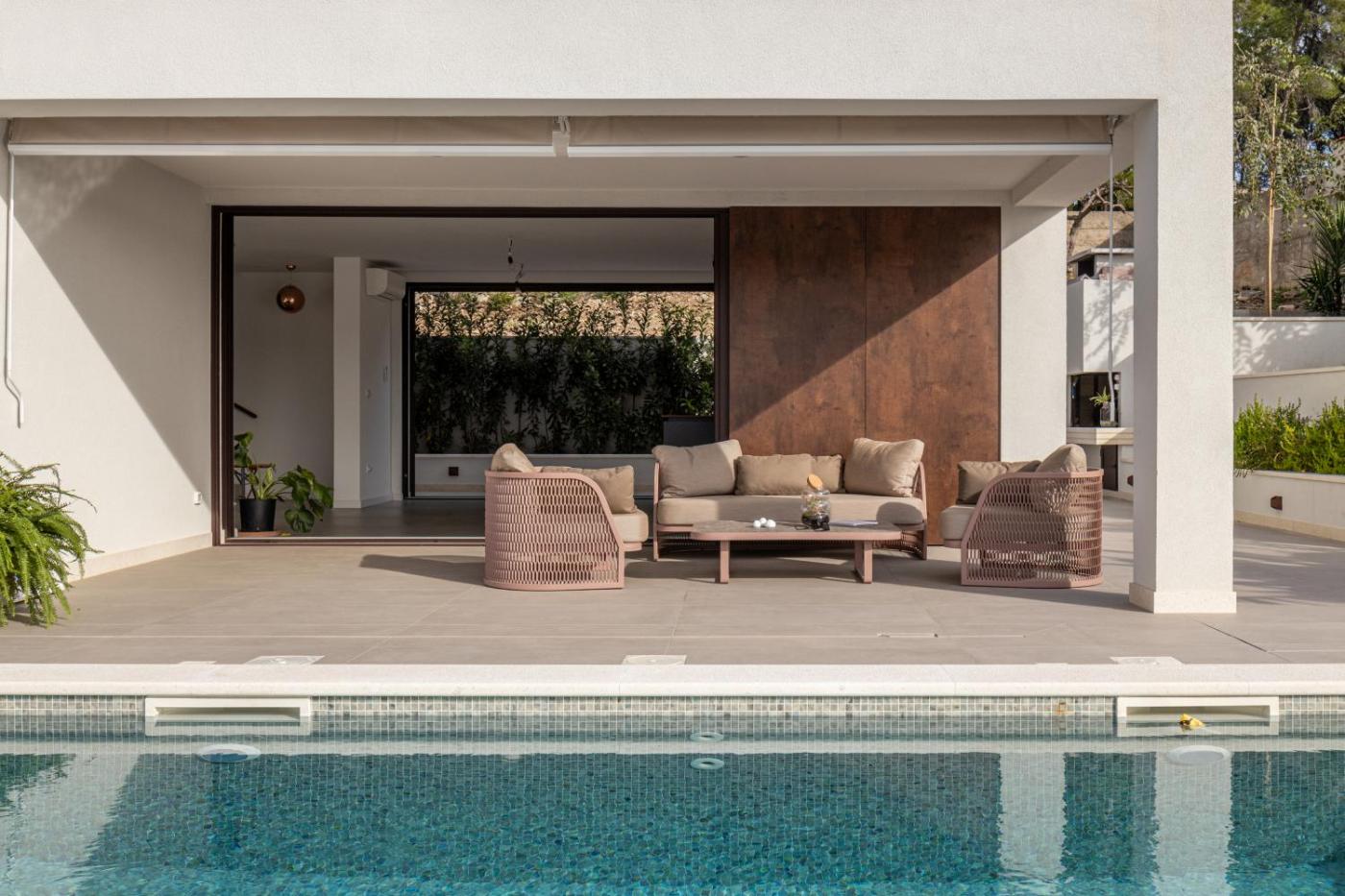 Villa. Guests will have a special experience as this villa features a pool with a view and a hot tub. This spacious villa consists of 2 living rooms, 5 separate bedrooms and 7 bathrooms with a walk-in shower and free toiletries. Guests will find a refrigerator, a dishwasher, kitchenware and a tea and coffee maker in the well-fitted kitchen. The villa also offers a barbecue. The air-conditioned villa provides a flat-screen TV with streaming services, a washing machine, soundproof walls, a minibar as well as sea views. The unit offers 7 beds.