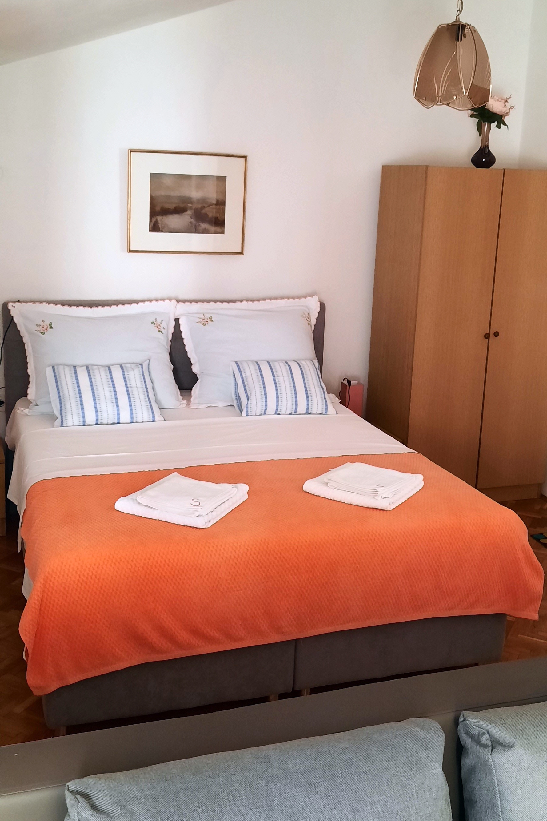 Studio flat can accommodate 2 guests. Beds are situated in 1 sleeping rooms, within 31m2. Guests can use a private terrace to enjoy the warm summer evenings. The studio offers the sea view. Food can be prepared using barbecue which is shared with other guests too. This accommodation unit welcomes pets at an additional charge. INCLUDED IN THE PRICE: tourist tax, final cleaning, air-conditioning, parking, internet, iron, ironing board, hairdryer, 1 bed for children (included in the price). OBLIGATORY ADDITIONAL COSTS: short stay fee (surcharge depending on a number of booked nights: 30% - 1, 20% - 2, 10% - 3). OPTIONAL ADDITIONAL COSTS: pets (€10.00 per night). The availability of additional services for your chosen dates of stay, as well as their prices (if none are listed) must be checked ahead of time. Any additional services not shown in the price calculation are payable directly to the property owner and only if used by the visitor. Discounts to the base price: free day 14=13 (for reservations of 14 or more days you get one free day for the stay until 31122026).