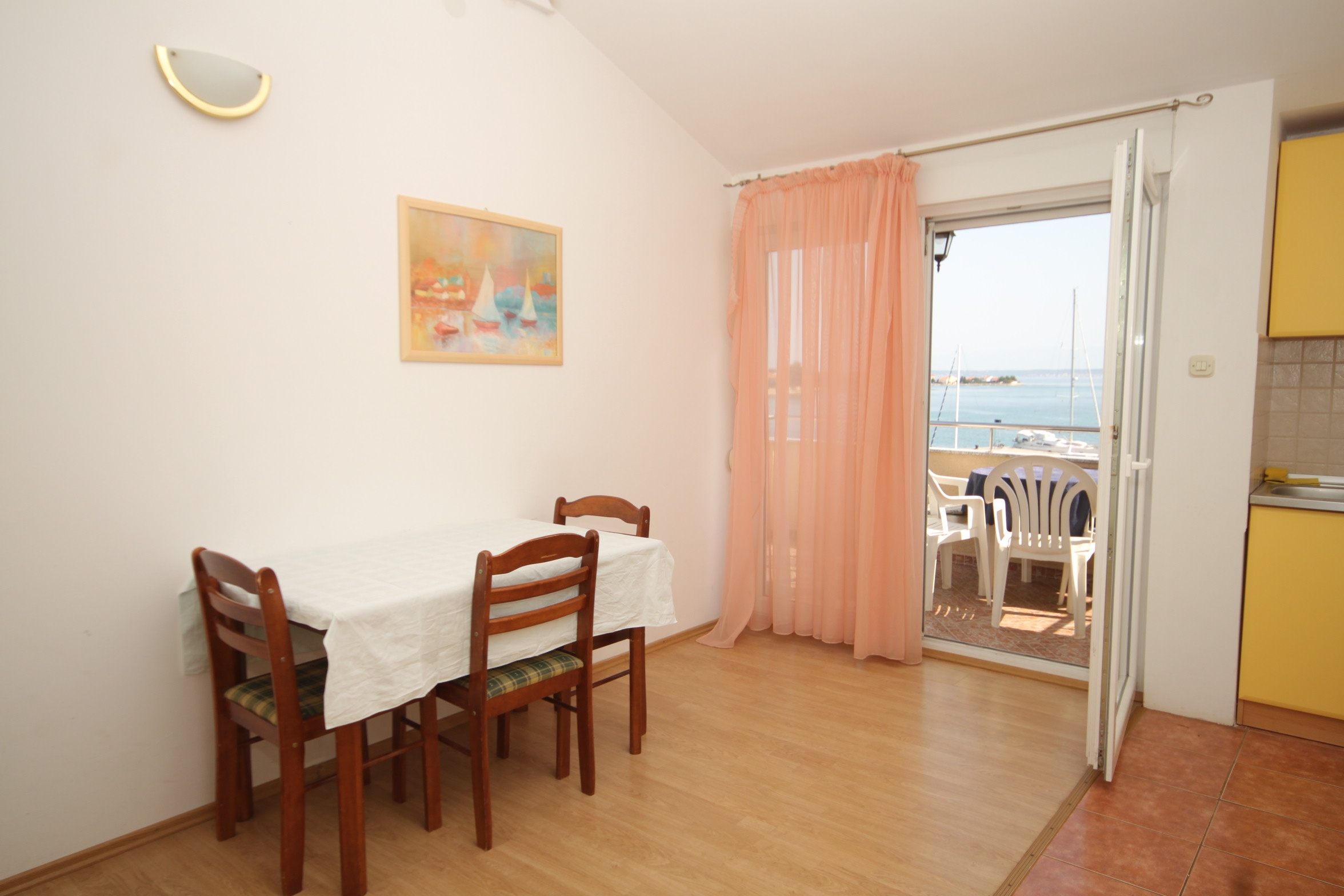 Apartment can accommodate 2 guests. Beds are situated in 1 sleeping rooms, within 37m2. Guests can use a private terrace to enjoy the warm summer evenings. The apartment offers the sea view. Food can be prepared using barbecue which is shared with other guests too. This accommodation unit welcomes pets at an additional charge. INCLUDED IN THE PRICE: tourist tax, final cleaning, air-conditioning, parking, internet, baby cot, hairdryer, 1 bed for children (included in the price). OBLIGATORY ADDITIONAL COSTS: short stay fee (surcharge depending on a number of booked nights: 30% - 1, 20% - 2, 10% - 3). OPTIONAL ADDITIONAL COSTS: boat mooring (€15.00 per night), pets (€5.00 per night). The availability of additional services for your chosen dates of stay, as well as their prices (if none are listed) must be checked ahead of time. Any additional services not shown in the price calculation are payable directly to the property owner and only if used by the visitor.