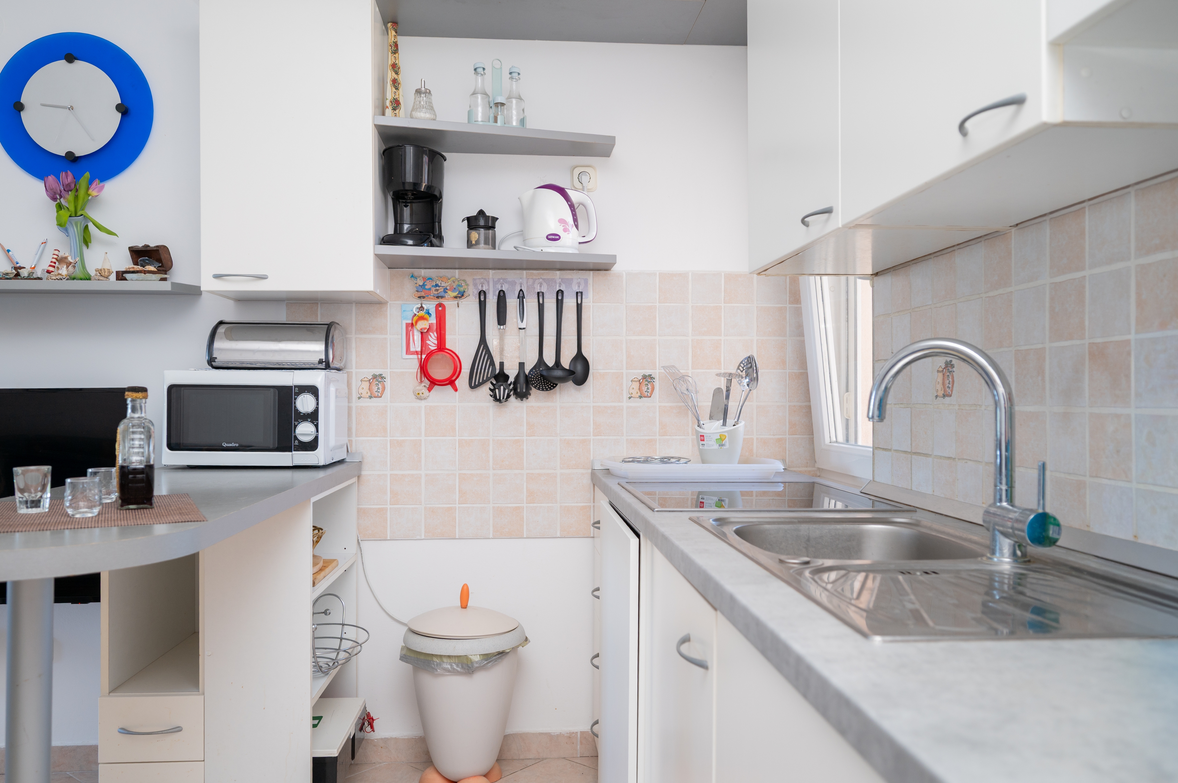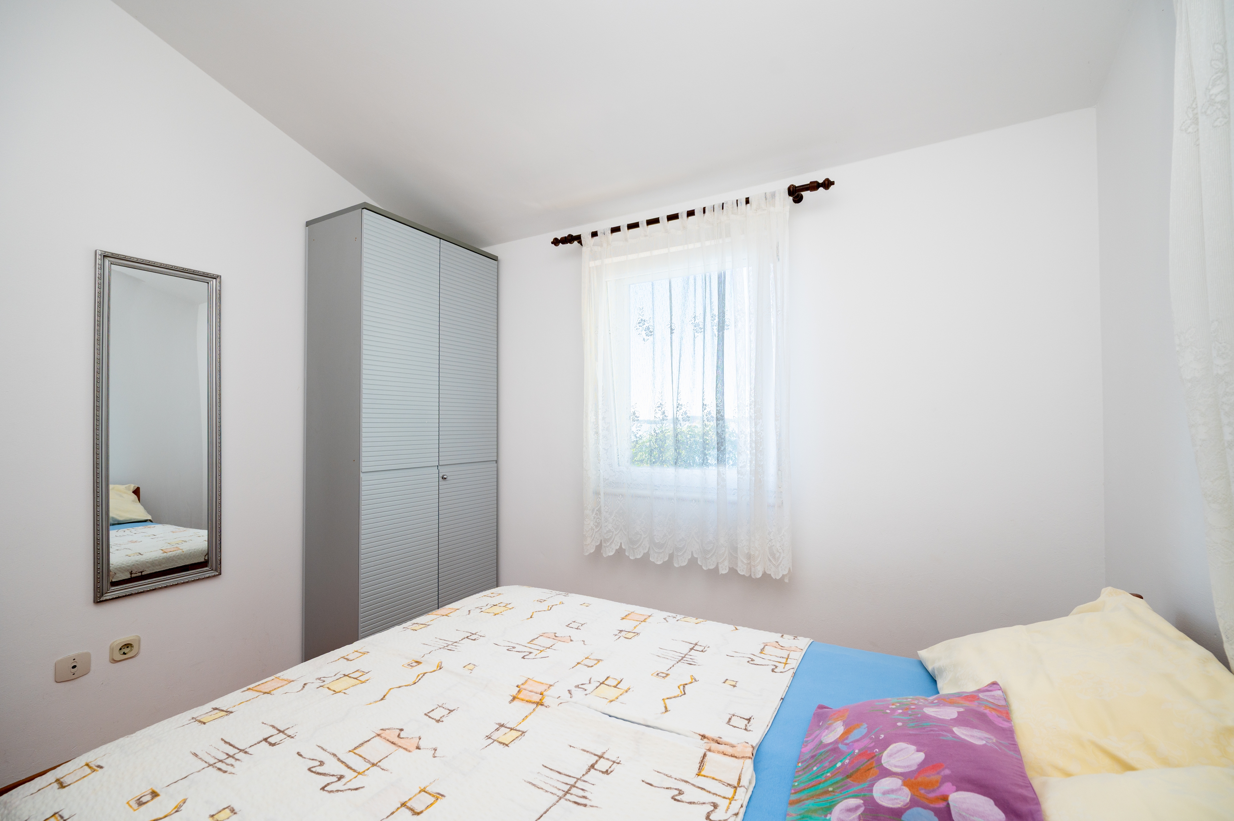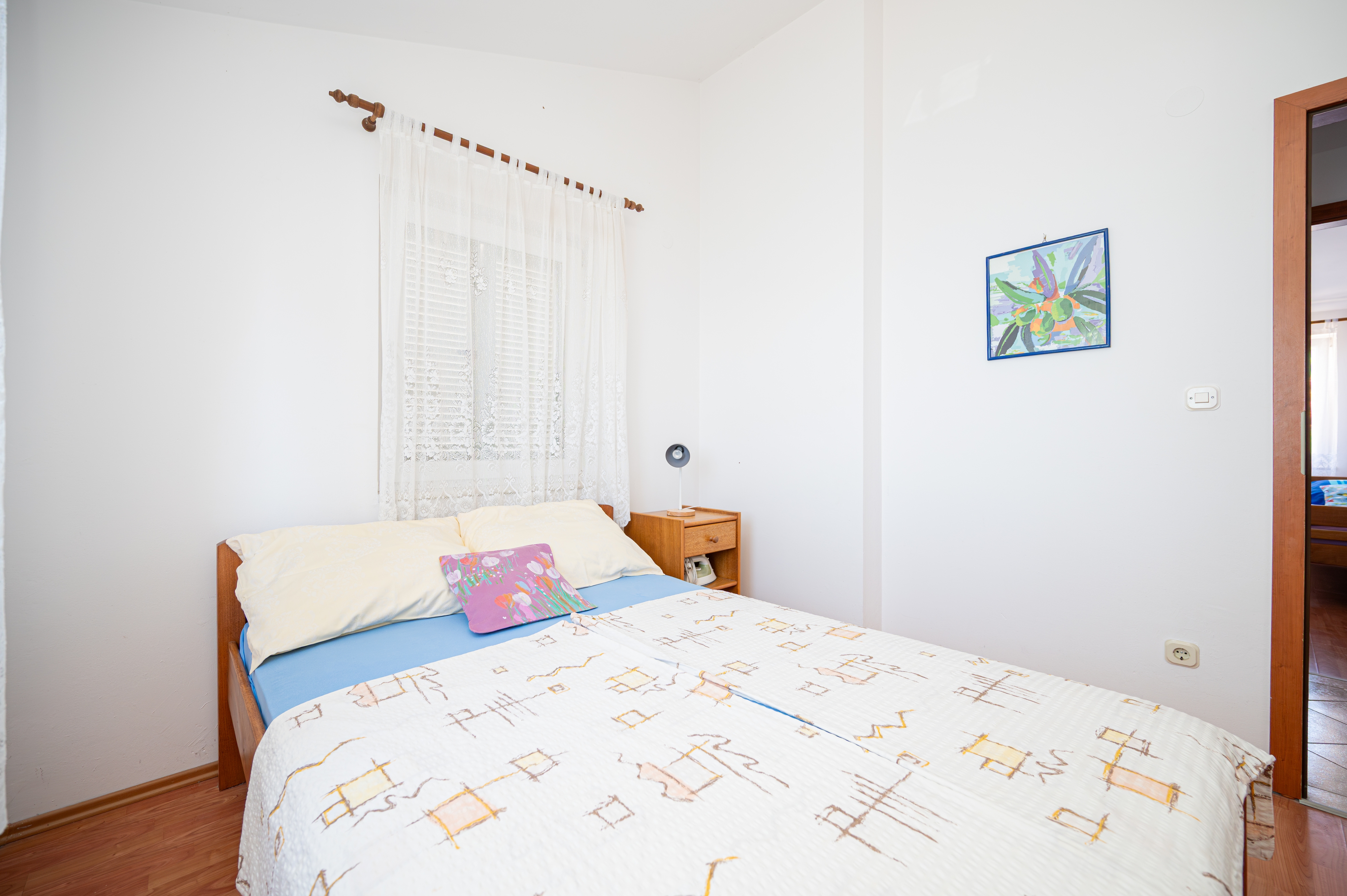 Apartment can accommodate 5 guests. Beds are situated in 2 sleeping rooms, but also in the living room, within 43m2. Guests can use a private terrace to enjoy the warm summer evenings. The apartment offers the sea view. Food can be prepared using barbecue which is shared with other guests too. INCLUDED IN THE PRICE: tourist tax, final cleaning, parking, internet, baby cot, iron, ironing board, hairdryer, sunshade, sunchairs. OPTIONAL ADDITIONAL COSTS: air-conditioning (€6.00 per night). The availability of additional services for your chosen dates of stay, as well as their prices (if none are listed) must be checked ahead of time. Any additional services not shown in the price calculation are payable directly to the property owner and only if used by the visitor.