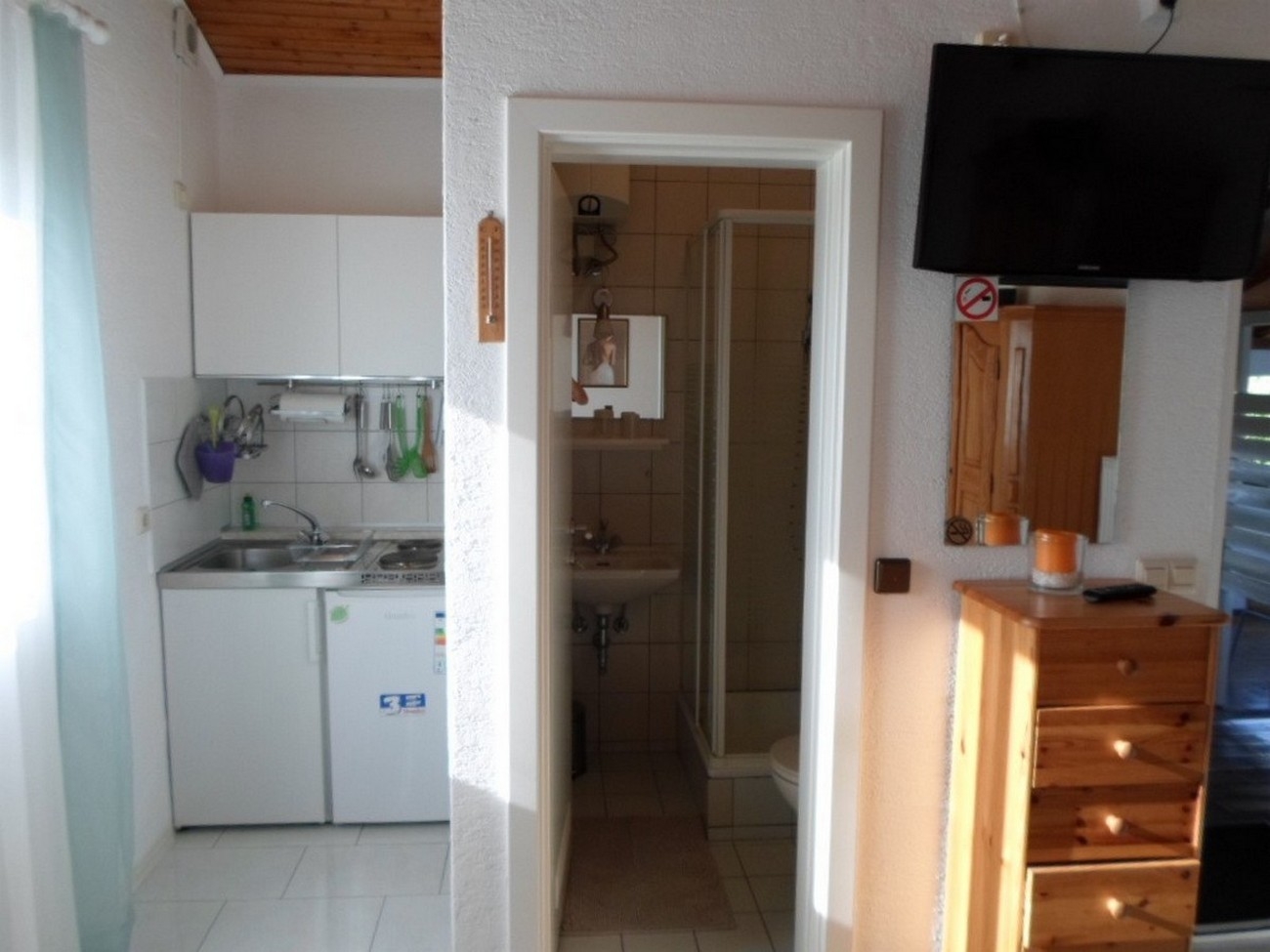 Studio flat can accommodate 2 guests. Beds are situated in 1 sleeping rooms, within 24m2. Guests can use a private terrace to enjoy the warm summer evenings. Food can be prepared using barbecue which is shared with other guests too. This accommodation unit welcomes pets at an additional charge. INCLUDED IN THE PRICE: tourist tax, final cleaning, parking, internet, hairdryer, sunshade. OBLIGATORY ADDITIONAL COSTS: short stay fee (surcharge depending on a number of booked nights: 30% - 1, 20% - 2, 10% - 3). OPTIONAL ADDITIONAL COSTS: air-conditioning (€5.00 per night), pets (€5.00 per night), additional bed (€5.00 per night). The availability of additional services for your chosen dates of stay, as well as their prices (if none are listed) must be checked ahead of time. Any additional services not shown in the price calculation are payable directly to the property owner and only if used by the visitor.