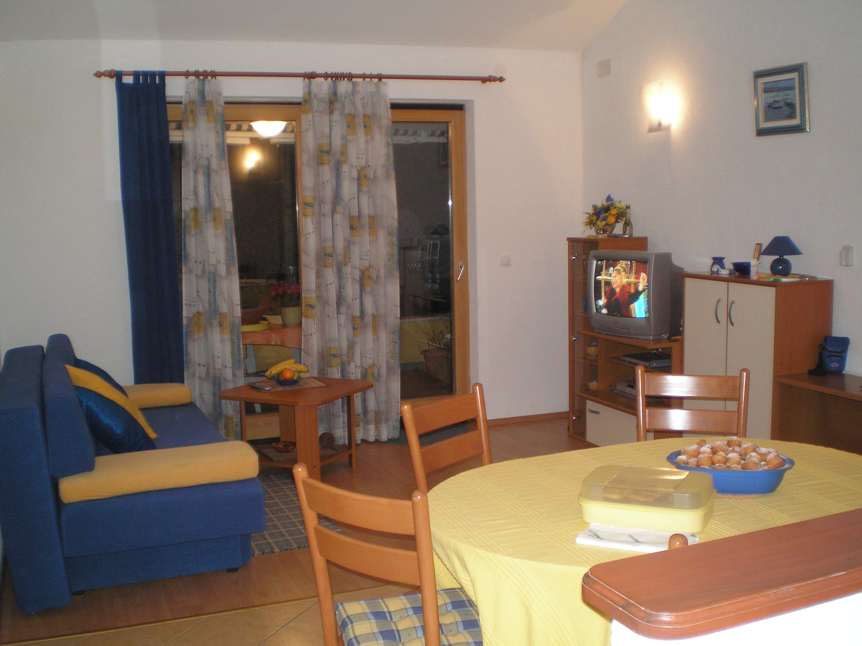 Apartment can accommodate 6 guests. Beds are situated in 2 sleeping rooms, but also in the living room, within 49m2. Guests can use a private terrace to enjoy the warm summer evenings. The apartment offers the sea view. Food can be prepared using barbecue which is shared with other guests too. INCLUDED IN THE PRICE: tourist tax, final cleaning, air-conditioning, internet, baby cot, iron, ironing board, hairdryer. OPTIONAL ADDITIONAL COSTS: laundry (€5.00 washing). The availability of additional services for your chosen dates of stay, as well as their prices (if none are listed) must be checked ahead of time. Any additional services not shown in the price calculation are payable directly to the property owner and only if used by the visitor.