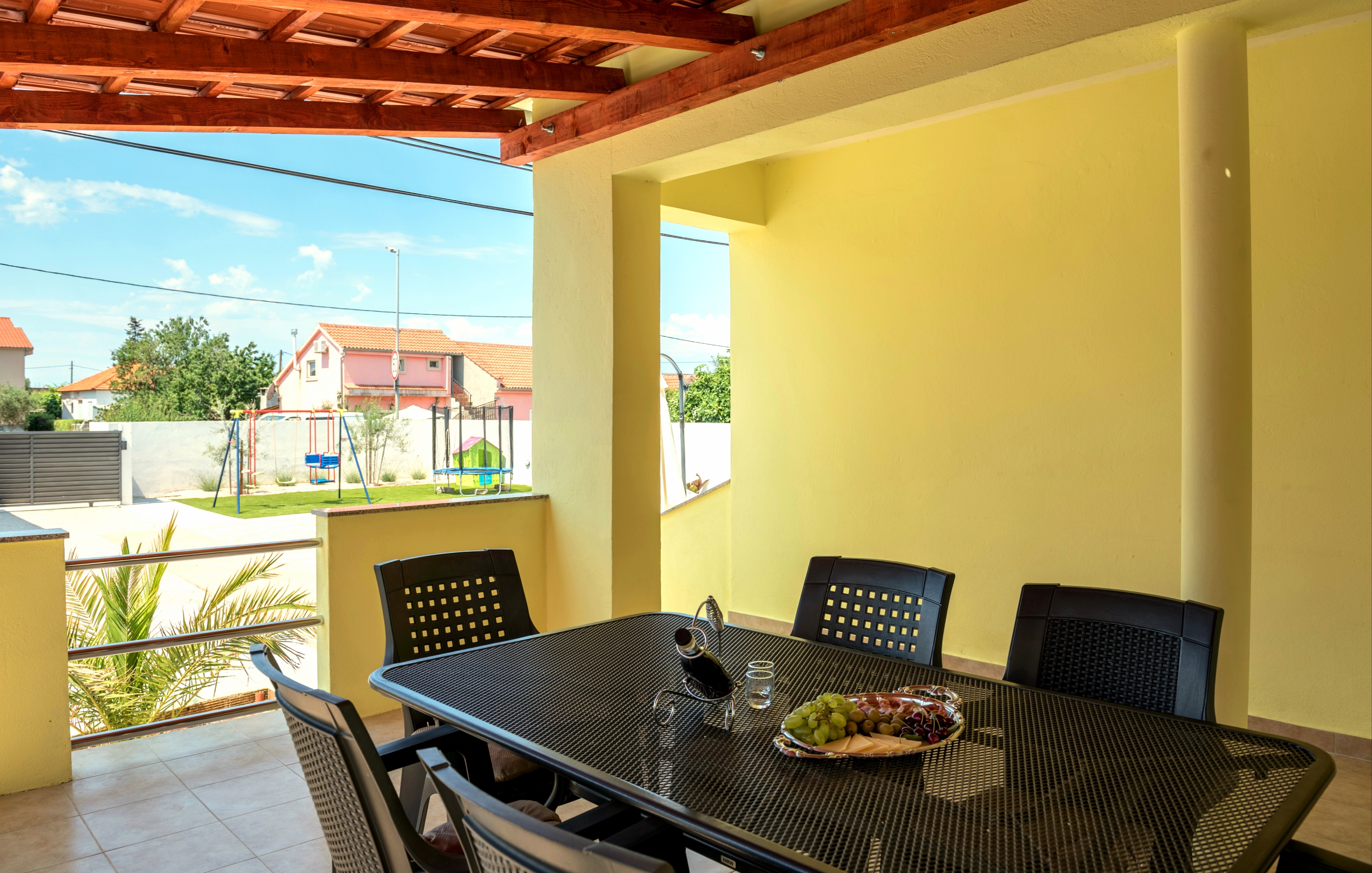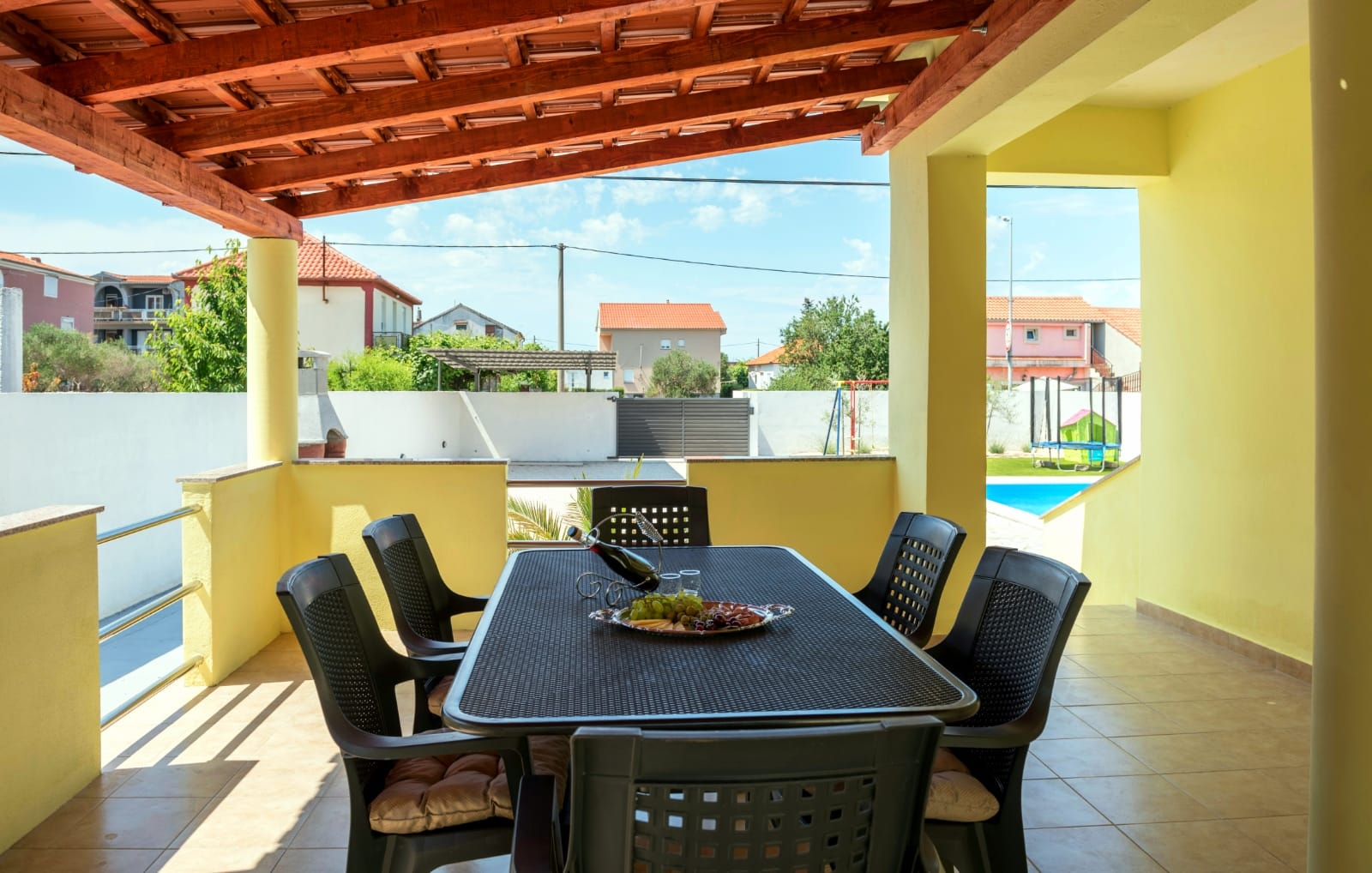 House can accommodate 6 guests. Beds are situated in 2 sleeping rooms, but also in the living room, within 66m2. Guests can use a private terrace to enjoy the warm summer evenings. For full enjoyment and relaxation there is a private barbecue for this accommodation guests only. During stay, there is a private pool for relaxation and pleasure. This accommodation unit welcomes pets at no additional costs. Notthe rooms of the booked accommodation unit are connectedone whole. INCLUDED IN THE PRICE: tourist tax, final cleaning, air-conditioning, pool, parking, internet, pets, baby cot, additional bed, iron, ironing board, sunshade. The availability of additional services for your chosen dates of stay, as well as their prices (if none are listed) must be checked ahead of time. Any additional services not shown in the price calculation are payable directly to the property owner and only if used by the visitor.